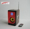 Specifications:* Available Colors: Red+brown, Orange+brown* Dimension: 13.5*11*19.5cm* NG.: 816g* Speakers:D72mm* Frequency respone: 20MHz* Impedence:4Ω* Distortion ≤0.5%* SNR≥50db* Power output: 3W×2* Battery input voltage: 3.7V* Battery capacity: 650-850MAH* Charge voltaget: 4.2±0.05V* Lithium ion battery input: DC 5V* Discharge time: depends on the volume & rhythm Functions: *Support SD/MMC/MS Card,USB Drive* Support IPOD/MP3/MP4/PC,and Mobile,etc* Support FM* Plastic knob with blue LED light* 3 pcs of mobile phone audio adaptors* Remote control* Portable, best choice for your journey
